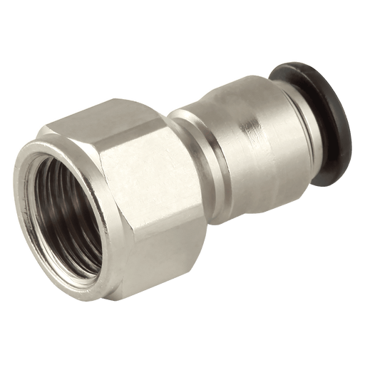 1/8" BSPP Female x 8mm Outside Diameter, 55000 Series, 20 bar Rated, Hex Body, Stud, Plastic/Brass Nickel Plated, Working Temperature -20°C to +80°...