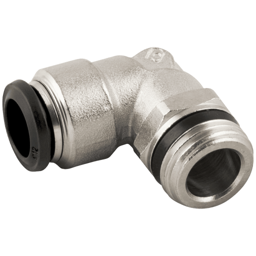 1/2" BSP Taper Male x 12mm Outside Diameter, 90° Elbow, Push Fitting, Plastic/Brass Nickel Plated, Working Temperature -20°C to +80°C, Maximum Work...