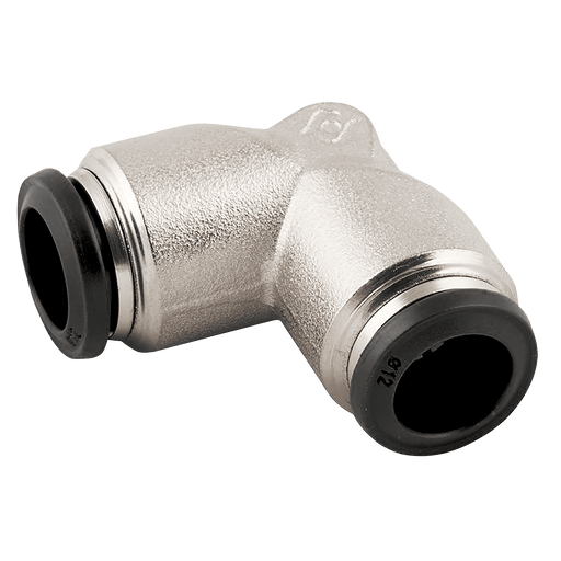 12mm Outside Diameter, 90° Elbow, Push Fitting, Plastic/Brass Nickel Plated, Working Temperature -20°C to +80°C, Maximum Working Pressure 20 bar, A...