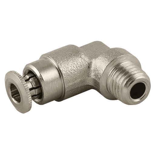 M10 x 1 Metric Male x 6mm Outside Diameter, 58000 Series, High Pressure Lubrication Fitting, 90° Stud Elbow, Brass Nickel Plated, Working Temperatu...