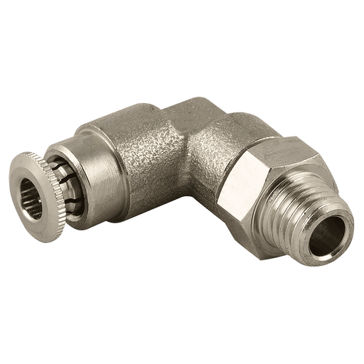 M10 x 1 Metric Male x 4mm Outside Diameter, 58000 Series, High Pressure Lubrication Fitting, 90° Stud Swivel Elbow, Brass Nickel Plated, Working Te...