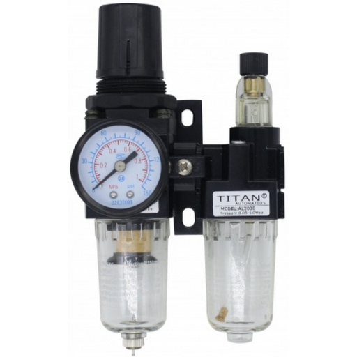 Original price £220.28 - Original price £220.28Original price£220.28£220.28 - £220.28Current price £220.28Titan A Series AC4 Series Filter Regulator & Lube Combi Sets | 1/2'' Port Size G | 1/4" Gauge Thread G | 3000 Max Flow L/min | AC4010-04D