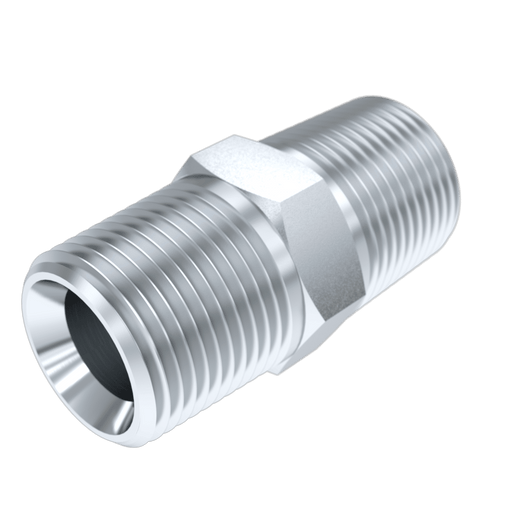 1/8" NPTF Male x 1/8" NPTF Male, Hydraulic Adaptor Steel, Zinc Plated Mild Steel, Maximum Working Pressure 350 bar, Burnett & Hillman