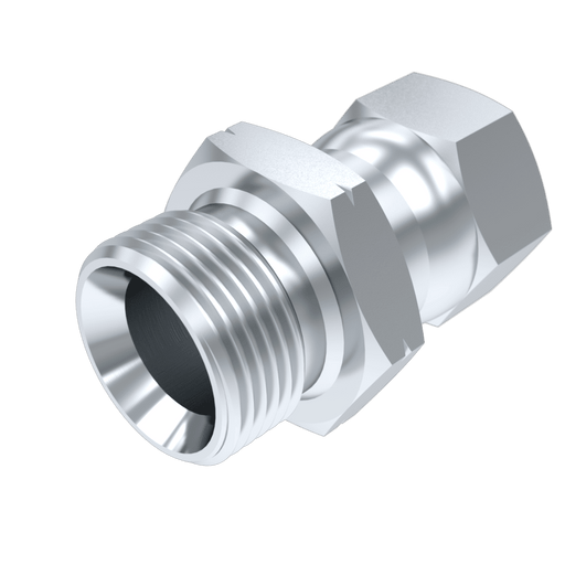 M22 x 1.5 Metric Male x 1/2" BSP Parallel Female, Hydraulic Adaptor Steel, Male 1.5mm Pitch x Swivel Female 60° Cone, Zinc Plated Mild Steel, Maxim...