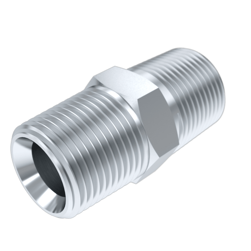1/2" BSP Tapered Male x 1/2" NPTF Male, Hydraulic Adaptor Steel, Zinc Plated Mild Steel, Maximum Working Pressure 310 bar, Burnett & Hillman
