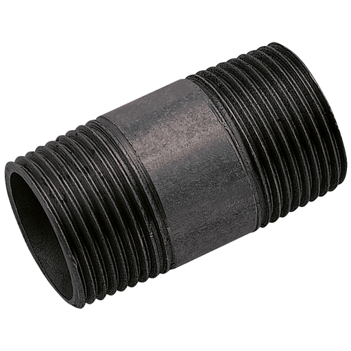1.1/2" BSP Tapered Male, Malleable Iron Pipe Fitting, Black, Barrel Nipple Medium Duty, Length 100mm, Maximum Working Temperature 200°C, Maximum Wo...