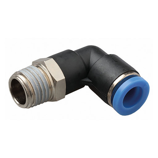 1/8" BSP Taper Male x 1/4" Outside Diameter, 90° Elbow, Push Fitting, Plastic/Brass Nickel Plated, Working Temperature 0°C to +60°C, Maximum Workin...