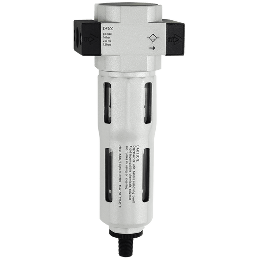 1/4" BSP Parallel Female, Air Preparation, Filter, DF Series, Flow 2000 Litres per Minute, Manual Drain, 5 Micron, Working Temperature -10°C to +60...